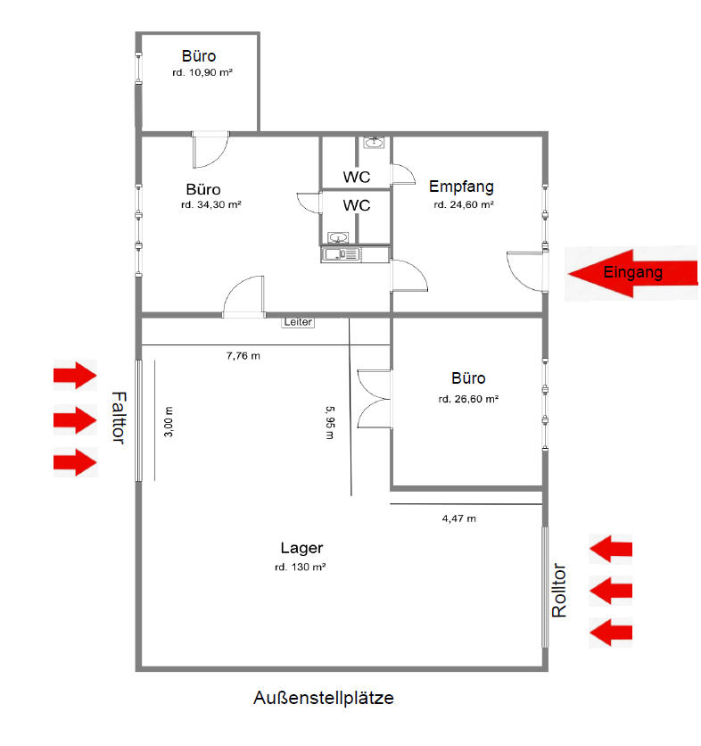 Bei dieser zur Vermietung stehenden Gewerbeeinheit handelt es sich um eine Lagerhalle mit integrierten Büroeinheiten im beliebten Gewerbegebiet von Mainz-Hechtsheim. Die Halle bietet unterschiedliche Nutzungsmöglichkeiten, vorwiegend ist allerdings eine Vermietung an ein ruhigeres Gewerbe erwünscht, da sich angrenzend ein Wohnhaus befindet. In der Lager/ Hallenfläche selbst sind Büroflächen integriert. Diese verfügen über 2 separate WC-Anlagen, sowie über einen eigenen Zugang. Die Halle selbst verfügt zusätzlich über ein Zwischengeschoss, welches mittels festinstallierter Leiter begehbar ist. Ausgestattet sind die Büroflächen mit Vinyl- und Granitböden, Holzdecken, Einbauschränken und Netzwerkverkabelungen. Die Beheizung erfolgt über eine Gaszentralheizung. Vereinbaren Sie einen Termin mit uns! Die wichtigsten Ausstattungsmerkmale der Lagerflächen bzw. der Büroflächen sind: Andienung über ebenerdiges Tor ca. 3 x 3 m Separater Zugang zur Büroeinheit Hallenhöhe ca. 5,60 m 5 zugehörige Außenstellplätze Ausreichend Beleuchtung, sowie Elektro-/ Starkstromanschlüsse Heizung- und Wasseranschluss Damen und Herren WC-Anlage Lagerbüro mit Brüstungskanal für Steckdosen