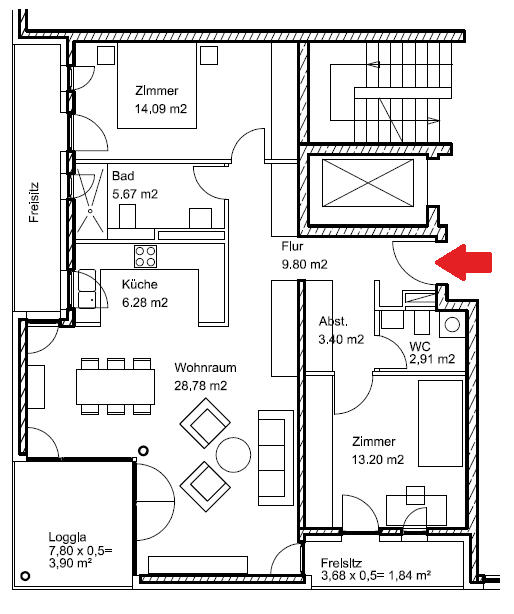 Die Wohnung befindet sich im obersten Stockwerk eines 5-geschossigen Mehrfamilien-Hauses, Baujahr 2013. Wohnfläche: 91,14 m², 3 Zimmer, offener Küchenbereich, Loggia, Tageslicht-Duschbad/WC, Flurbereich. Ausstattung: Parkettböden Fußbodenheizung gefliester Küchen und Badbereich elektrische Jalousien Aufzug Kellerraum TG-Stellplatz (mtl. 100,--) Die Wohnung kann im Februar 2026 bezogen werden. Gerne stehen wir Ihnen für einen Besichtigungstermin, nach telefonischer Terminabsprache, zur Verfügung.