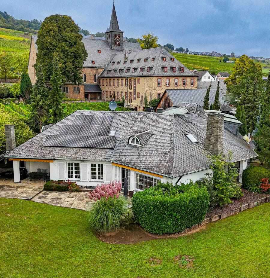 Inmitten der malerischen Weinberge von Rüdesheim am Rhein einem der charmantesten Orte des UNESCO-Welterbes Oberes Mittelrheintal vereint die Villa Marienthal auf beeindruckende Weise exklusives Wohnen mit wirtschaftlicher Weitsicht. Die Villa Marienthal besteht aus zwei getrennten Gebäuden (nach WEG) mit einer Gesamtwohnfläche von rund 786 m². Die vollständig modernisierten Wohneinheiten umfassen die Hauptresidenz mit ca 370 m² sowie 4 weitere Wohneinheiten in dem direkt verbundenen Gebäude mit jeweils ca. 185 m², ca 50 m², ca 47 m² sowie ca 29 m². Ein privater Wellnessbereich (ca 138 m²) mit Schwimmbad, Sauna und Ruheraum kann allen Einheiten zur Verfügung stehen oder einer Einheit separat zugeteilt werden. Das Besondere: Die Immobilie eröffnet Ihnen die Möglichkeit, Wohnluxus, Arbeiten und Kapitalanlage in einem Objekt zu vereinen. Nutzen Sie die großzügige Hauptresidenz mit direktem Zugang zum Spa selbst und generieren Sie gleichzeitig stabile Einnahmen durch die Vermietung der vier separaten Einheiten. Alternativ bietet sich das Objekt auch als Mehrgenerationenlösung oder exklusives Co-Living-Konzept an. Die Aufteilung in einzelne Wohneinheiten schafft maximale Flexibilität sei es für die private Nutzung, möblierte Langzeitvermietung oder als kombinierte Wohn- und Arbeitslösung. Die bestehende Struktur ermöglicht eine direkte Umsetzung ohne Umbaubedarf. Mit dem zu erwartenden Mieteingang sowie einem Alleinstellungsmerkmal durch den Spa-Bereich ist die Villa Marienthal nicht nur eine attraktive Kapitalanlage, sondern auch ein Rückzugsort mit Charakter. Die Nachfrage in der Region sowohl touristisch als auch durch beruflich bedingte Zuzüge (z. B. aus dem Rhein-Main-Gebiet) ist hoch, das Angebot an vergleichbaren Objekten äußerst begrenzt. Ausstattung: - Massive Bauweise mit Stahlbetondecken und Porotonstein - Walmdach mit Gauben und Eindeckung aus Naturschiefer - Kunststofffenster 3-fach-verglast aus 2016 und 2021 - Alufenster mit Isolierglas im Untergeschoss - Natursteinböden - Vollholzdielenböden im Wohn- und Essbereich - Holztüren im Wohnbereich, Glastüren im Wellnessbereich - Wellnessbereich mit Sauna, Dusche, WC und Ruheraum - Indoor-Schwimmbad (10m x 4,5m mit einer Tiefe von 1,40 - 1,80m) mit Be- und Entlüftungsanlage - Schwimmbadtechnik komplett erneuert auf Hotel-Niveau - Brunnenanlage mit 30.000 l Erdtank im Garten - Bunkerraum mit Fluchttunnel - Whirlpool-Badezimmer im Dachgeschoss - Klimageräte in den Schlafzimmern im Dachgeschoss - Drei offene Kamine (jeweils in den großen Wohneinheiten sowie auf einer Terrasse) - Photovoltaik-Anlage mit einer Leistung von rd. 4,35 KW - Blockheizkraftwerk, Gasspitzenlastkessel, Öl-Zentralheizung mit 14.000 l Öltank (Wechselseitiger Betrieb der Anlagen möglich) - Notstromaggregat mit zwei Generatoren (Benzin und Diesel) mit einer Leistung bis rd. 11 KW - Garage für 3 großzügige PKW, Stellplätze für weitere 3 PKW im Außenbereich - Großzügiges Kühllager für Ihre Lebensmittel